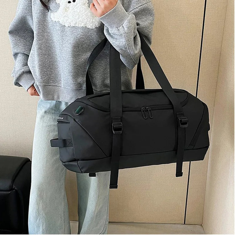 Made from durable nylon, this fitness gym shoulder duffel offers a spacious interior with multiple compartments for organized storage. Featuring an independent shoe pocket, it keeps footwear separate from other belongings to maintain cleanliness. The bag's large opening and partitioned design provide easy access and efficient packing, making it suitable for travel, sports, and outdoor activities. Adjustable straps allow for versatile carrying options, ensuring comfort during use. Waterproof and scratch-resistant materials enhance its durability for everyday use.