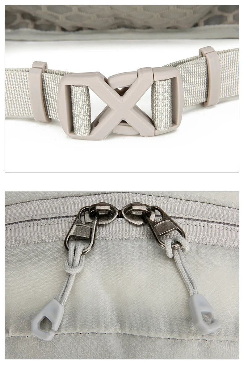 Designed for outdoor activities such as cycling, hiking, and running, this lightweight vest backpack features a large-capacity main compartment with multiple built-in pockets to organize essentials efficiently. The breathable mesh back panel ensures comfort during extended wear, while the double buckle strap system provides a secure and stable fit. Additional features include external elastic webbing for hiking pole attachment, waterproof and scratch-resistant nylon fabric, and reflective strips for enhanced visibility in low-light conditions.